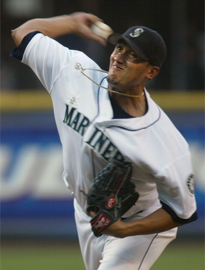 | July 29, 2002 Pitcher Freddy Garcia works against the Detroit Tigers during the first inning in Seattle.(AP Photo/John Froschauer) |
